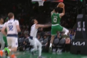 下一篇: 状态回暖!塔图姆底角强投三分命中,个人连得7分。